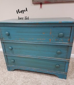 I think the lucky penny should stay with the dresser so I’m going to attach it to the inside of one of the drawers before I put her up for sale!