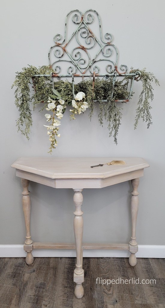 Demi is pretty small at only 28″ wide, 13″ deep, and 26″ tall. This would make a cute little hallway or entryway table maybe with a mirror hung above it to give it a little more height. Or you could find a cute wall planter like the one I used!